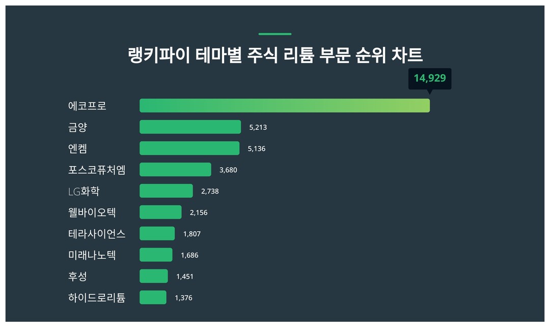 [출처: 랭키파이 테마별 주식 리튬 부문 트렌드 테이블]