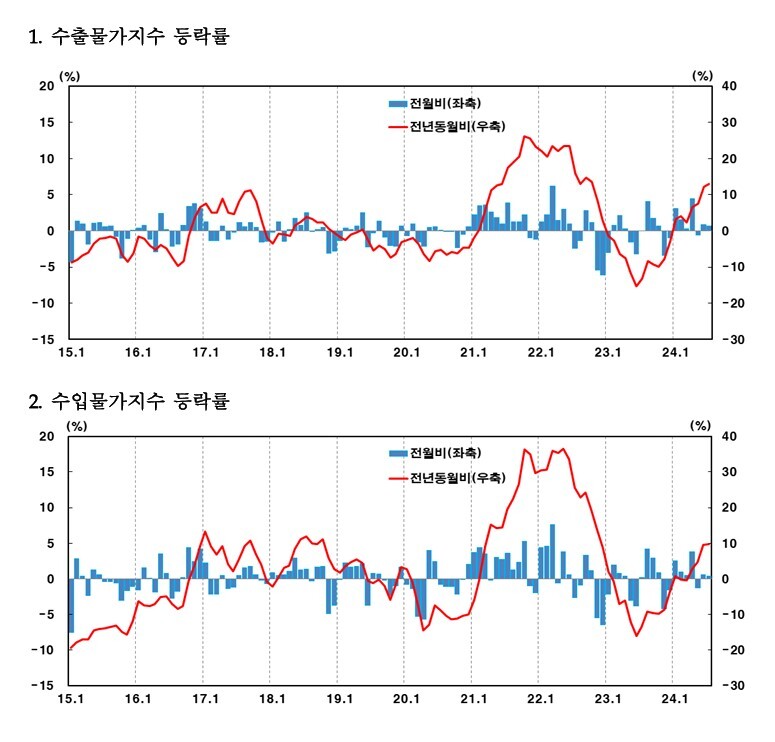 [CWN 김보람 기자] 유가 상승 여파에 지난달 수출입 물가가 두 달 연속 상승했다.