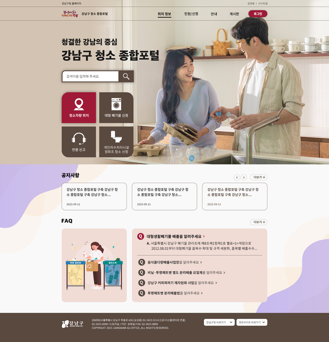 | ▲ 강남구 청소 종합포털 메인화면 갈무리. 이미지=강남 |