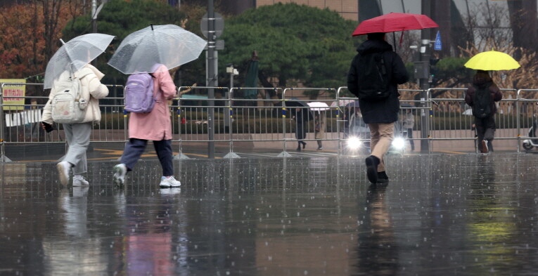 강수량은 내일까지 서울 등 수도권 5~20㎜이며 강원도, 광주·전남, 경상권 10~40㎜, 대구·경북·전북 5~30㎜, 제주도 20~60㎜(산지 80㎜ 이상) 등이며 강원 내륙·산지에는 비나 3~8㎝의 눈이 내린다.
