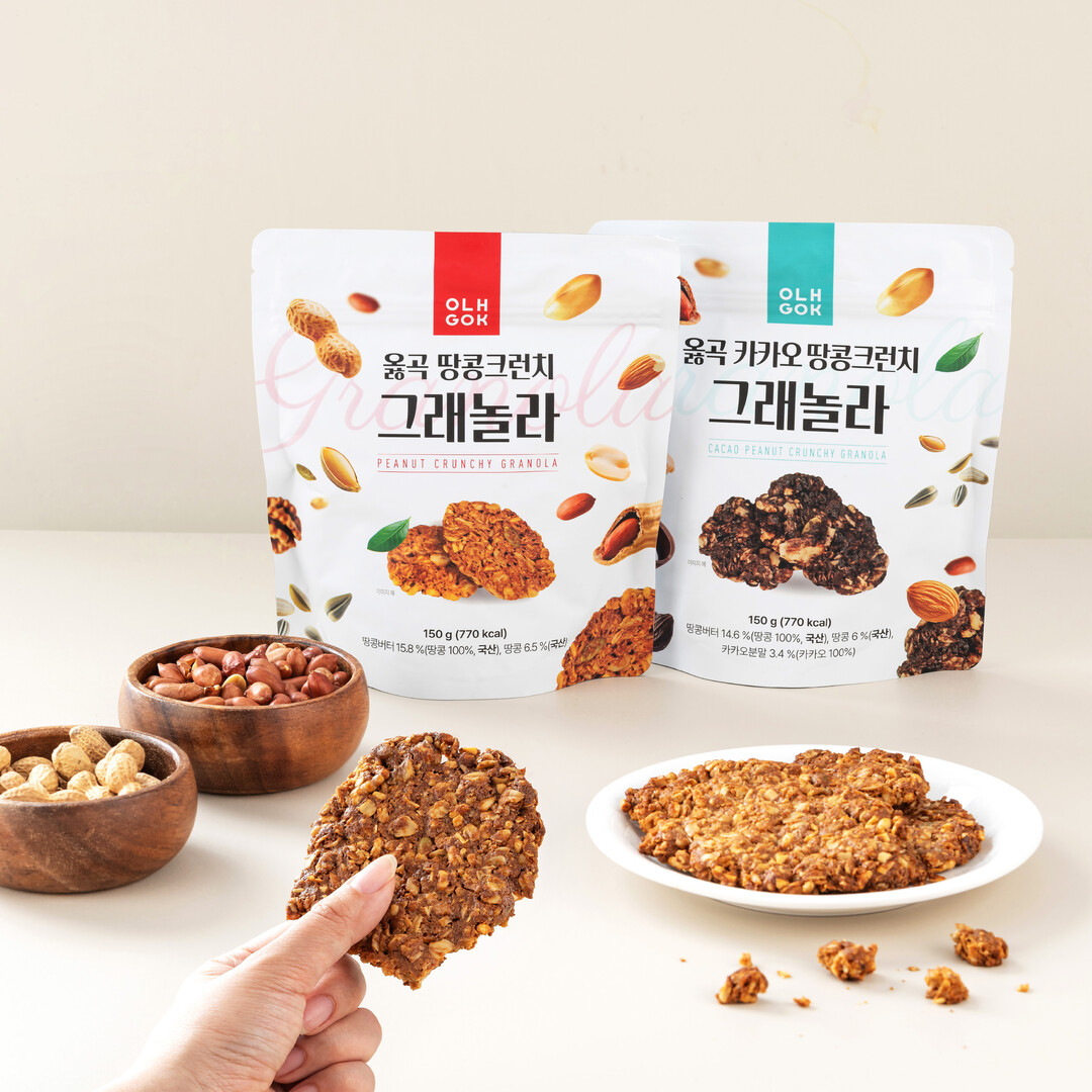 자사의 그래놀라는 옳곡의 시그니처 제품인 국내산 100% 무첨가 땅콩버터를 사용해 고소한 맛을 살렸으며, 밀가루 없이 반죽해 오븐에서 두 차례 구워 바삭한 식감을 구현했다. 설탕 대신 메이플 시럽을 사용해 당 함량을 낮춘 점도 특징이다.