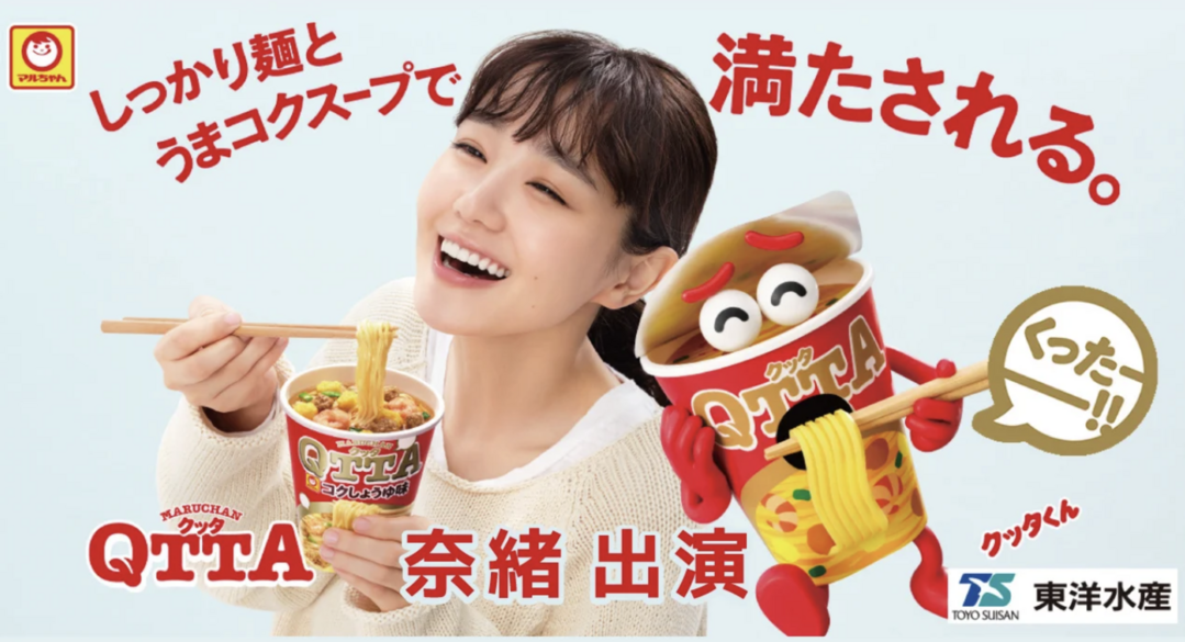 | ▲ 자료제공=스타피쉬엔터테인먼트, 영화 ‘栄光のバックホーム’에 출연한 어빙 소속 일본의 인기 절정 여배우 나오(奈緒)의 QTTA 컵라면 광고 |