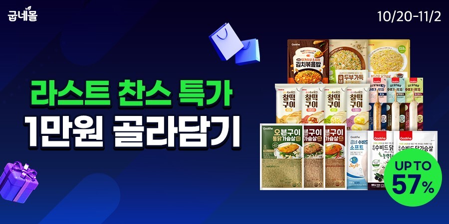 황금연휴 이후 건강한 일상 복귀를 돕기 위해 마련된 이번 행사는 굽네몰 인기 제품을 최대 57% 할인된 1만 원 균일가로 구매할 수 있는 것이 특징이다. 또한 한 페이지에서 여러 제품을 자유롭게 선택할 수 있는 ‘골라담기’ 형식으로 구성돼 소비자 편의성을 높였다.