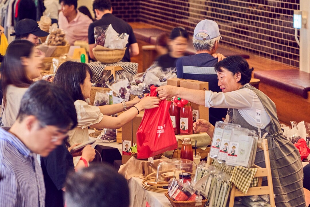이번 파머스 마켓은 버섯엔(생표고버섯·말린표고버섯), 상도농원(복숭아), 이천쌀강정(쌀강정·뻥튀기), 명인농원(포도), 오건농장(토마토), 오뜨플로르(꽃) 등 지역 농가 6곳이 참여했다.