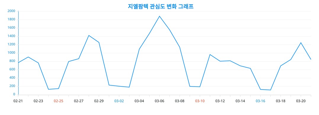 이번 분석을 통해 얻어진 지엘팜텍에 대한 일간 변화 추이 차트는, 지엘팜텍에 대한 관심이 어떻게 변화했는지를 생생하게 드러낸다.