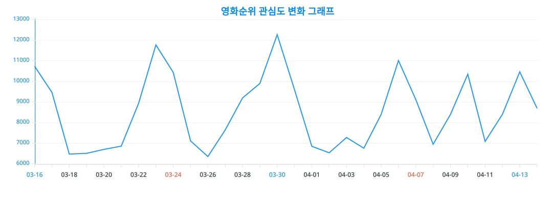 또한, 영화순위에 대한 일간 변화 추이를 보여주는 차트는 영화순위에 대한 관심이 어떻게 변화하고 있는지를 상세하게 보여준다.