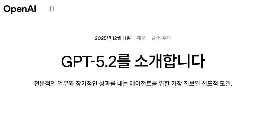 오픈 AI는 11일(현지시간) 현재 버전 출시 한 달 만에 차세대 모델 ‘GPT-5.2’를 공개했다고 밝혔다.
