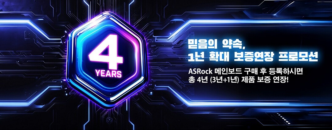 애즈락, 한국 단독 ‘메인보드 4년 보증연장’ 프로모션 진행