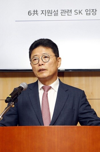 | ▲이형희 SK수펙스추구협의회 커뮤니케이션위원장은 "SK 성장 역사와 가치가 크게 훼손된 만큼 이혼 재판은 이제 회장 개인의 문제를 넘어 그룹 차원의 문제가 됐다"며 "6공의 유무형 지원으로 성장한 기업이라는 법원 판단만은 상고심에서 반드시 바로잡고 싶다"고 말했다. 사진=SK |