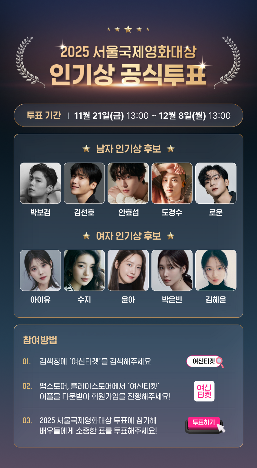 한편, 서울국제영화대상 인기상 공식 투표는 11월 21일(금) 13시부터 진행되어 12월 8일(월) 13시까지 진행된다.