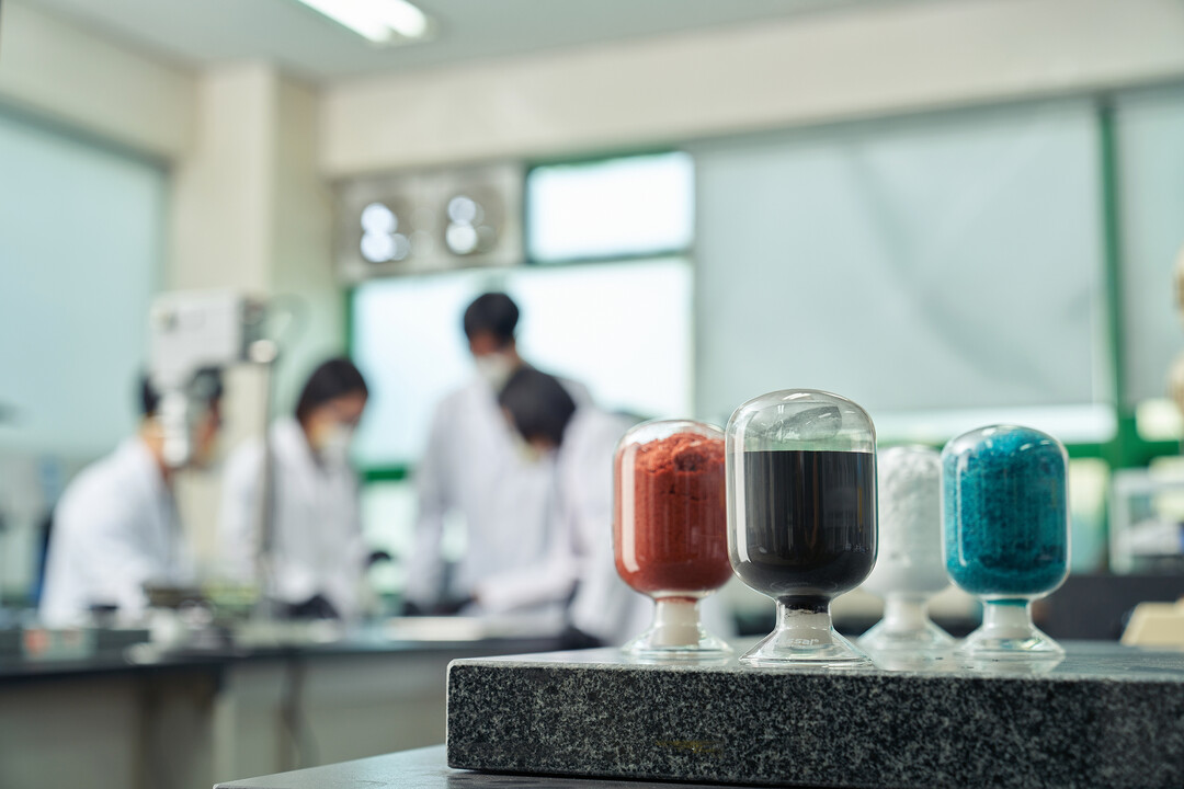| ▲코발트, 양극재, 리튬, 니켈 등 양극재 원료와 포스코퓨처엠 연구원들의 모습. 사진=포스코퓨처엠 |