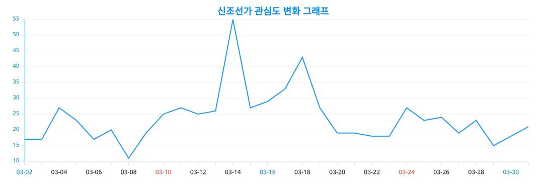 신조선가의 연령별 관심도 분포는 랭키파이에서 수집한 방대한 빅데이터를 분석하여 얻은 결과이며, 이를 통해 신조선가에 대한 전반적인 사회적 관심과 선호도를 파악할 수 있다.