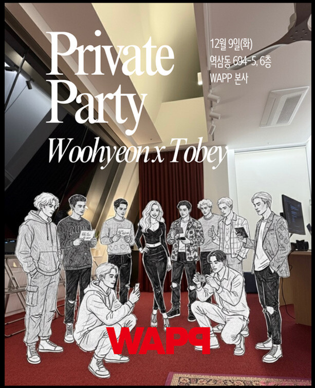 9일 열리는 '프라이빗 파티'에서는 TOBEY 작가의 '夜の白蛇' 대형 아트토이가 전시되며, 모델 김우현이 직접 작곡한 일렉트로닉 테크노 장르의 신곡이 최초 공개된다.