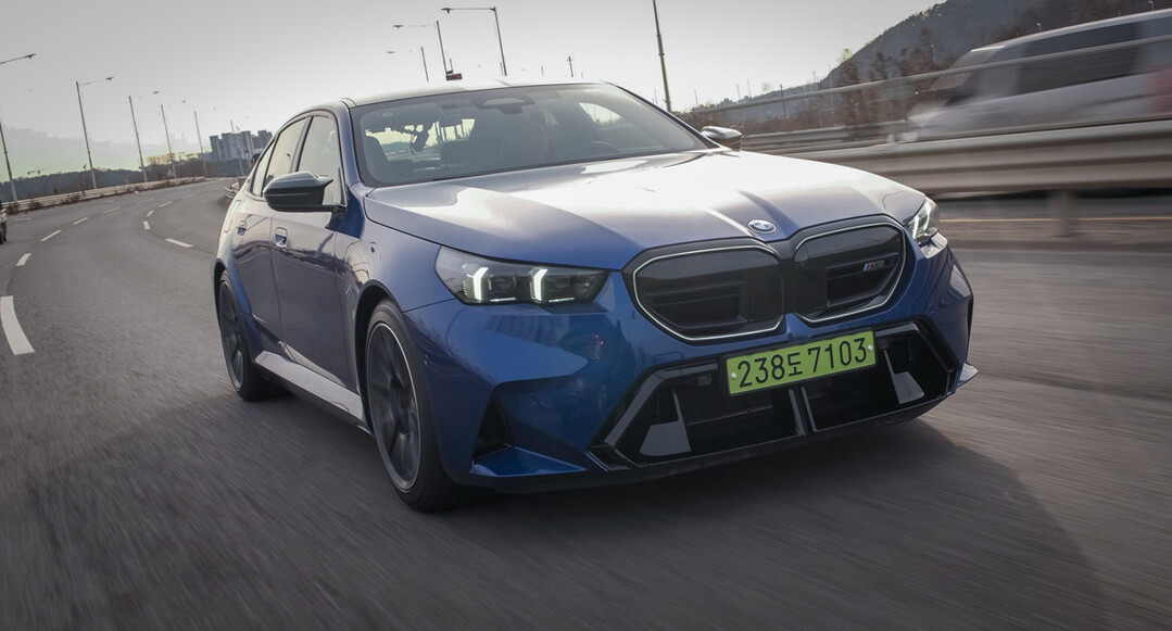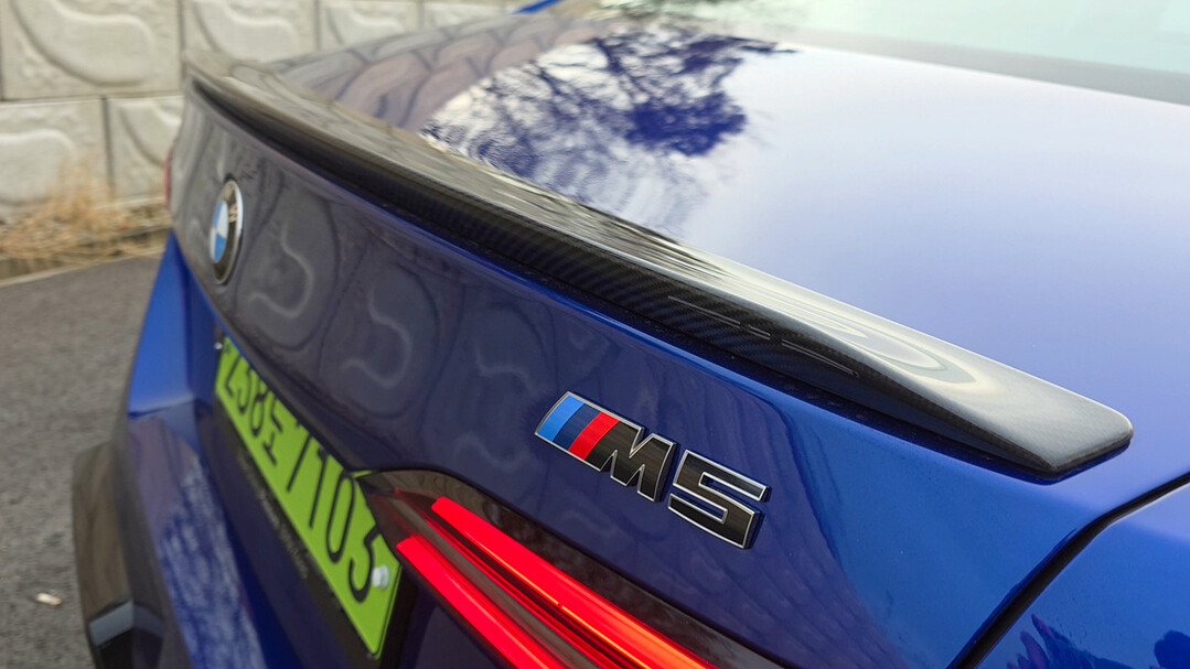 전면부의 거대한 키드니 그릴과 공격적인 M 전용 범퍼는 도로 위에서 시선을 압도하는 존재감을 뿜어냅니다. 멀리서도 '아, 이건 M5다!' 하고 외치는 듯한 강렬함이 느껴지죠.