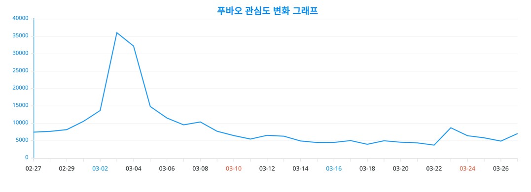 이 차트는 시간에 따른 푸바오의 인기 변동성을 직관적으로 나타내고 있다.
