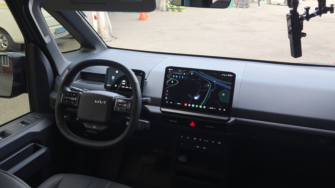 실내 센터 디스플레이는 안드로이드 운영체제가 적용됐는데요. 앞으로 현대차그룹에서 출시될 모든 차량에 적용될 차세대 인포테인먼트 시스템 ‘플레오스OS’를 미리 경험할 수 있었습니다. 기존 ccNC보다 사용환경이 간단하고 접근성이 좋게 디자인이 되어서, 디지털기기에 취약하신 분들도 쉽게 다가갈 수 있을 정도였습니다.