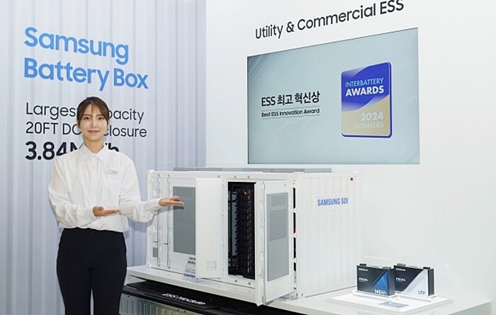 | ▲삼성SDI의 ESS 주력 제품인 SBB(삼성배터리박스)가 '인터배터리 2024 어워즈'에서 'ESS 최고 혁신상'을 수상했다. 사진=삼성SDI |