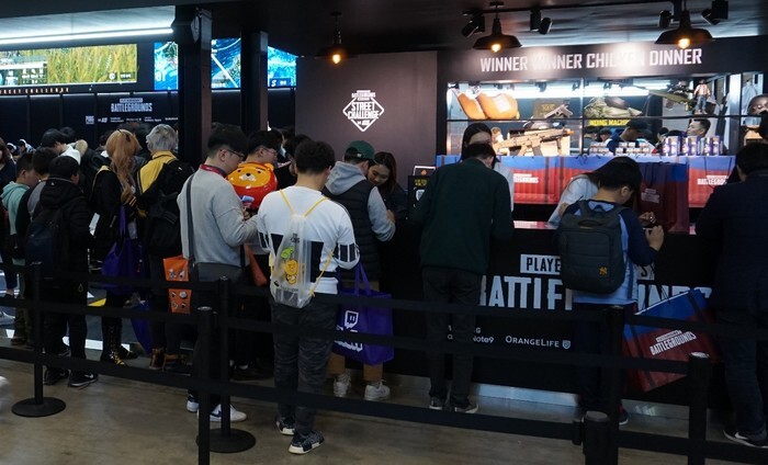 펍지주식회사 부스에서 진행한 프로모션은 현장에 배치되어 있는 QR코드를 스캔하여 ‘배그 인증하기, 모의고사, TOP3’등 미션을 깨고 스탬프로 적립하여 다양한 경품을 제공했다.