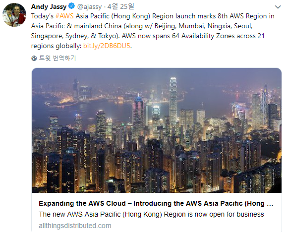 아마존 웹서비스의 글로벌 인프라 및 고객지원 담당 부사장인 피터 디산티스(Peter DeSantis)는 “홍콩은 핀테크 허브로 널리 알려져 있고 스타트업 벤처들이 사업을 키우는 곳으로서 그간 많은 고객들로부터 AWS 지역 사무소를 홍콩에 설립해서 자신들이 세계 최고 수준의 클라우드 상에서 비즈니스를 운영할 수 있도록 해달라는 요청을 받아왔다. 스타트업 벤처들과 일반기업, 정부기관 등 홍콩에 존재하는 역동적인 비즈니스 환경은 이 도시를 아시아 최고의 디지털 핫스팟으로 만들었다. 홍콩 특별행정구에 AWS 지역 사무소를 설립함으로써 우리는 향후 수십 년에 걸쳐 보다 많은 고객들이 최종 고객들의 경험을 크게 변화시킬 수 있도록 기민하게 이노베이션을 실행할 수 있도록 도울 수 있기를 바란다”고 말했다.