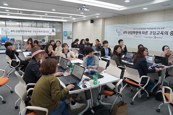 CJ올리브네트웍스는 올해 처음으로 용산구청 평생교육 프로그램과 연계해 학부모를 위한 특별 과정을 진행했다. 코딩교육 의무화로 코딩교육에 대한 관심이 높아지는 상황에서 정작 학부모들이 코딩에 대한 이해도가 부족한 점을 감안한 것.