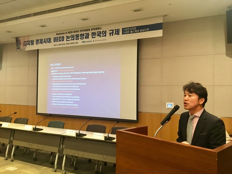 5월 9일 서울 여의도 전경련회관에서 '디지털 경제시대 OECD 논의 동향과 한국의 규제 - 스마트시티와 스마트 헬스케어 중심으로'라는 주제로 세미나가 개최되었다.