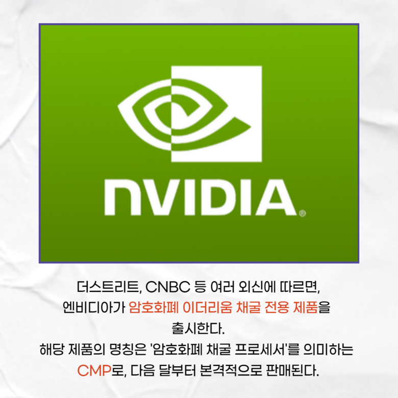 CWN(CHANGE WITH NEWS) - 엔비디아, 이더리움 채굴 전문 제품 ′CMP′ 출시