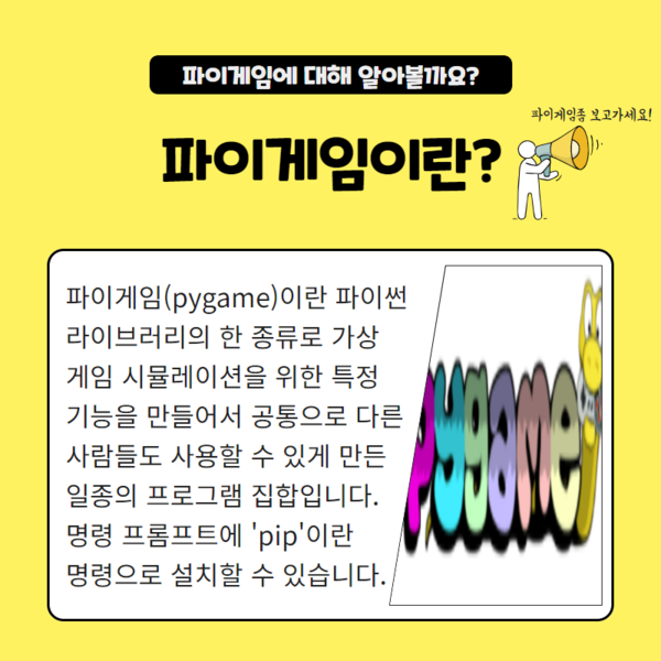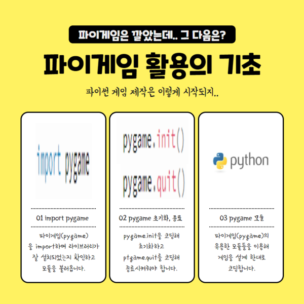 [카드뉴스] 파이썬으로 게임 제작 함께 시작해볼까요?...파이게임(pygame)