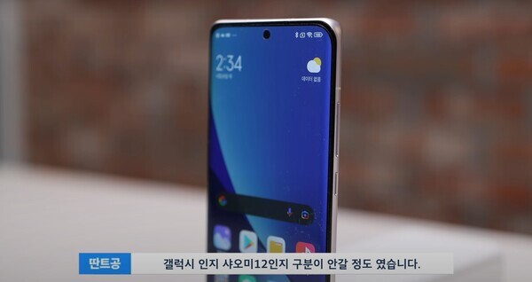 딴트공은 "제품 사이즈는 152.7mmx69.9mmx8.2mm, 무게는 약 180g으로 작고 슬림하다"면서 "전체적인 사이즈나 디자인 모두 갤럭시S10 시리즈와 상당히 닮아 있다. 특히, 측면에 듀얼 엣지 디스플레이가 적용됐다는 점이 비슷하다. 이 부분만 보면 갤럭시 제품인지 샤오미12인지 구분이 안 갈 정도"라 말했다.