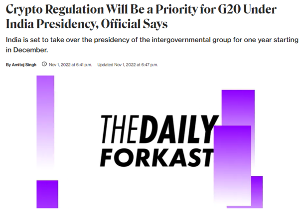 다음 G20 정상회의 의장국으로 예정된 인도가 임기 1년 동안 암호화폐 규제를 우선순위에 둘 것을 시사했다.