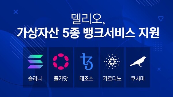 델리오, 폴카닷·솔라나·테조스 등 가상자산 5종 뱅크서비스 추가