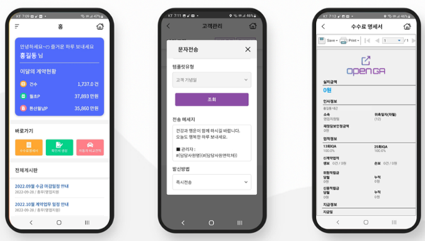 ‘오픈GA 플랫폼’은 특정 보험사에 종속되지 않는 독립법인보험대리점(GA, General Agency)과 소속 설계사의 생산성 향상을 돕는 보험 경영 정보 시스템이다. 계약과 청구, 영업을 비롯해 수수료 및 성과, HR 등을 관리할 수 있는 구독형 서비스다.