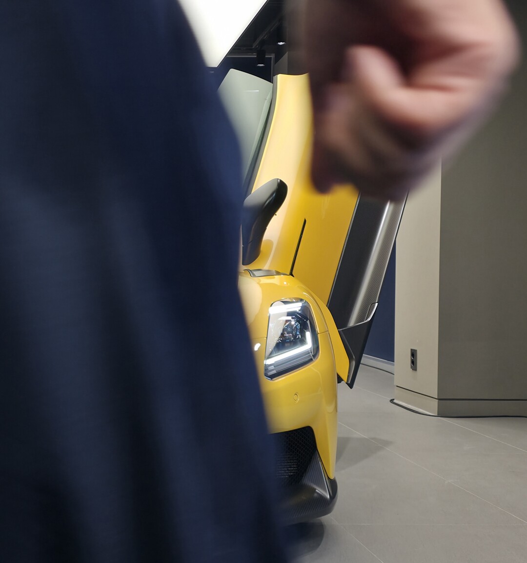 현장은 꿀벌이 연상되는 강렬한 노란색 GT2 스트라달레로 전시장 전체가 후끈했습니다. 뜨거운 기대감과 열기로