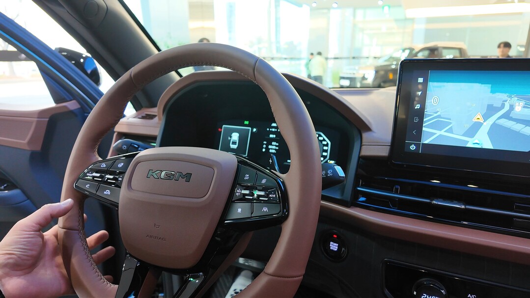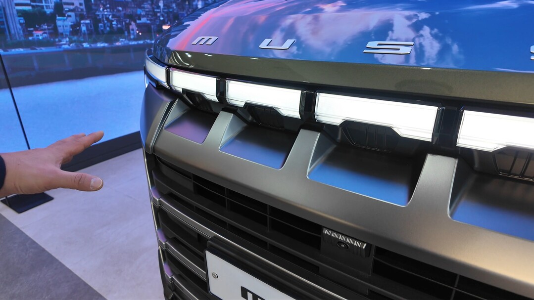 차량 전면을 마주하는 순간, KGM의 디자인 철학인 'Powered by Toughness'가 그대로 구현된 역동적이고 단단한 이미지가 피부로 와닿았습니다.