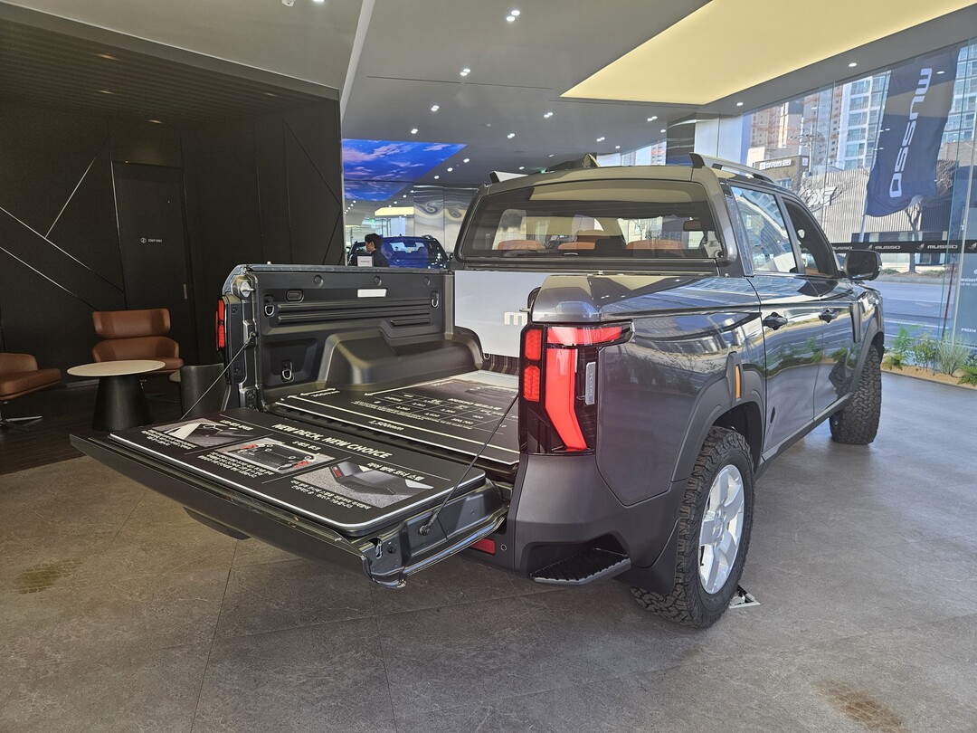 굵직한 주간 주행등(DRL) 라인과 5개의 키네틱 라이팅 블록으로 이루어진 수평형 LED 센터 포지셔닝 램프는 날카로우면서도 강렬한 인상을 주었죠. 마치 맹수의 눈빛처럼 또렷한 시인성은 물론, KGM 픽업만의 정체성을 선명하게 각인시켰습니다.