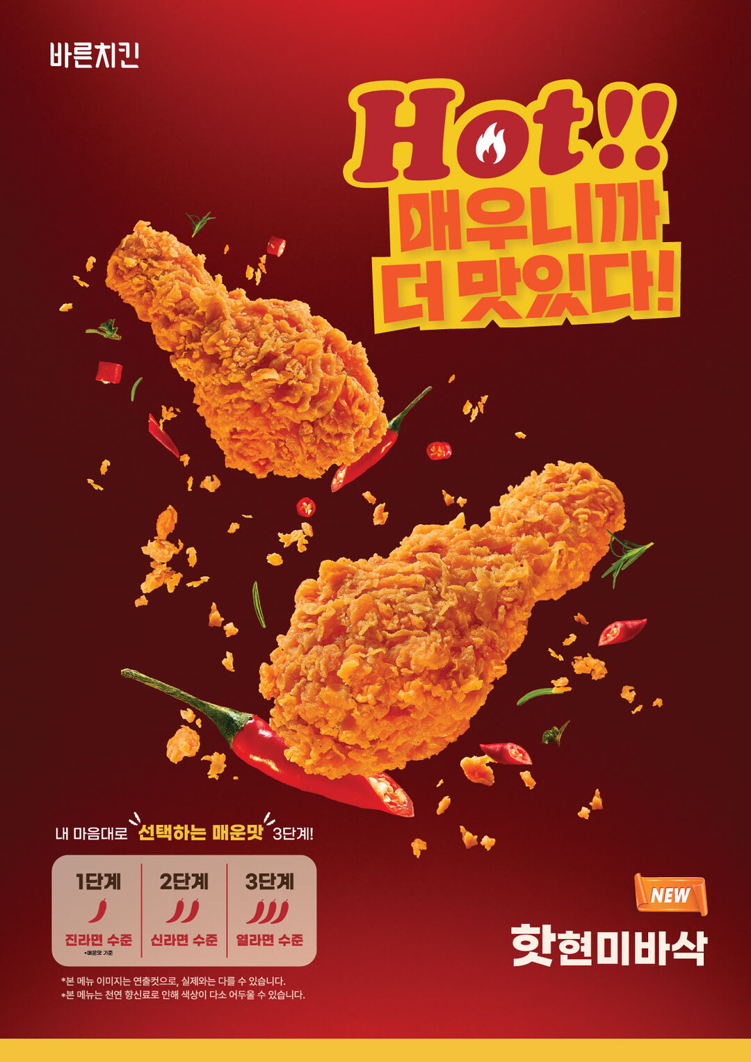 | ▲ 바른치킨, 취향대로 매운맛 고르는 핫현미바삭 신메뉴 출시 사진=바른치킨 |