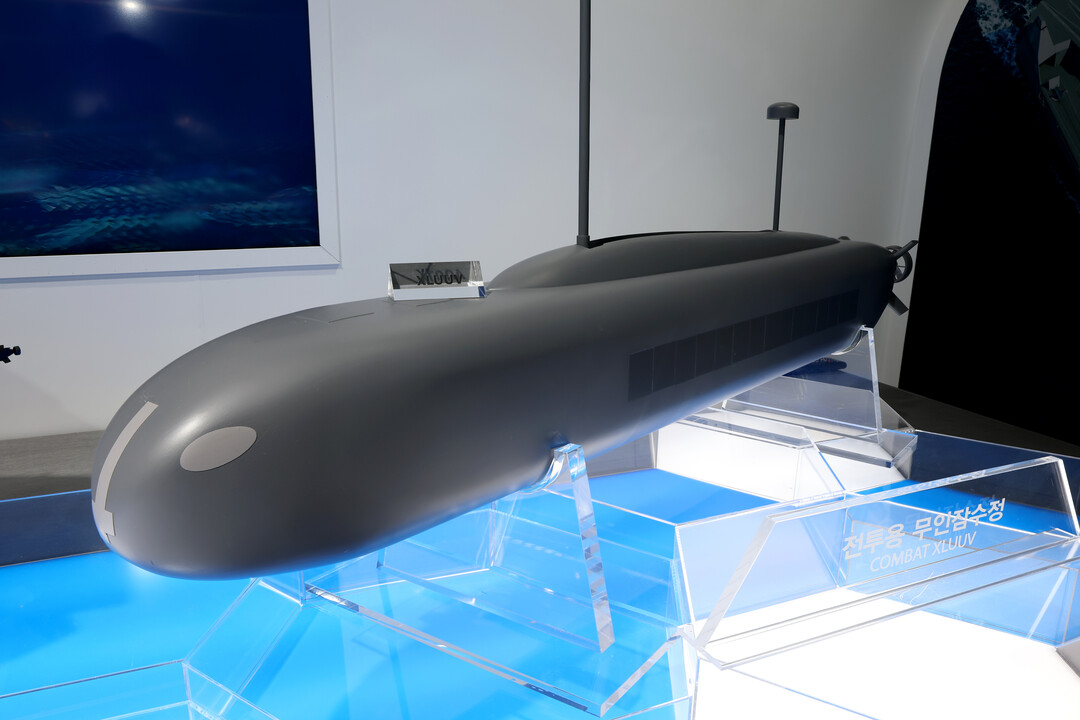 | ▲한화오션이 지난해 6월 부산 벡스코에서 진행된 마덱스 2023 전시회에서 처음 선보인 '해양 유·무인 복합전투체계' 중 무인 잠수정. 사진=한화오션 |