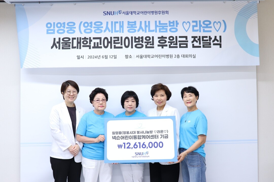 [CWN 이성호 기자] 가수 임영웅 팬클럽 '영웅시대 라온'이 중증 소아 청소년 환자와 보호자를 위한 후원금을 지난 12일 넥슨어린이통합케어센터에 전달했다고 전했다.