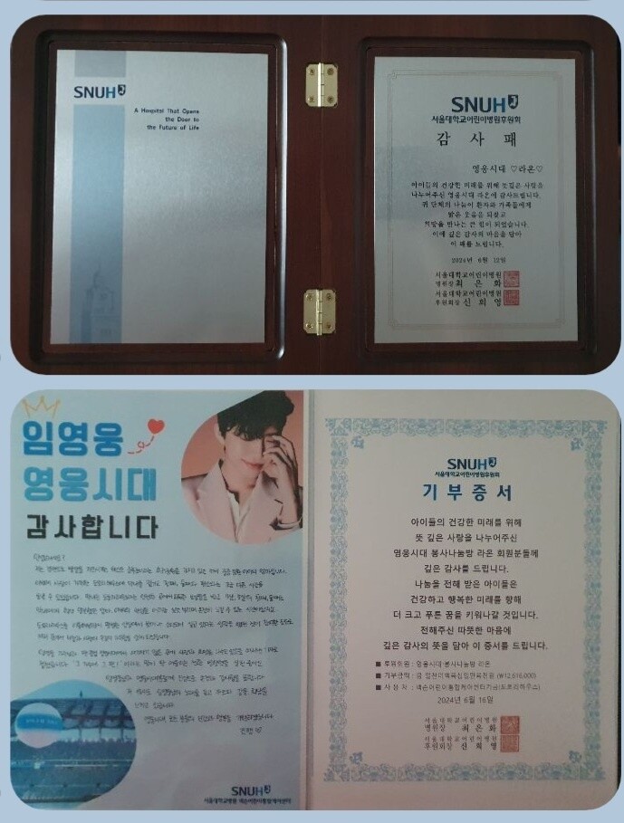 임영웅 팬클럽 '영웅시대 라온'...서울대병원에 1천2백여만원 기부