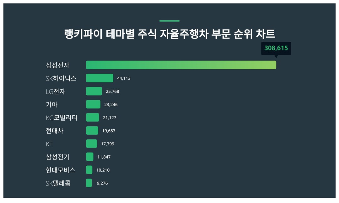 [CWN 김해남 기자] 랭키파이가 발표한 2024년 3월 29일 트렌드지수 분석 결과 테마별 주식 자율주행차 부문 트렌드지수에서 삼성전자 주가가 1위를 차지했다.