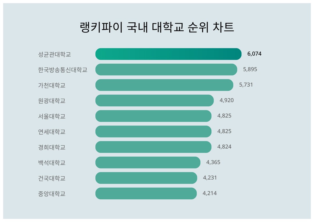 | 1 | 성균관대학교 | 6,074 | 26% | 27% | 7% | 20% | 20% |