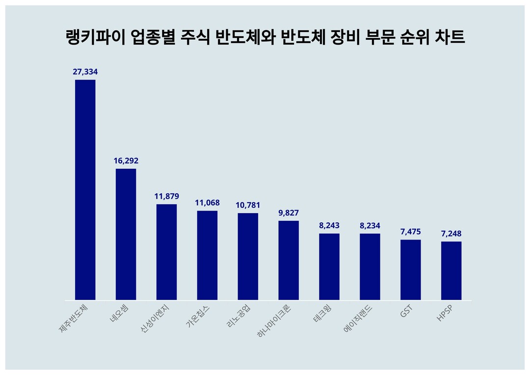 [출처: 랭키파이 업종별 주식 반도체와 반도체 장비 부문 트렌드 테이블]
