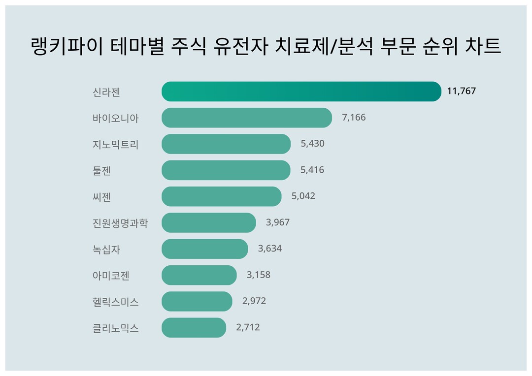 [출처: 랭키파이 테마별 주식 유전자 치료제/분석 부문 트렌드 테이블]