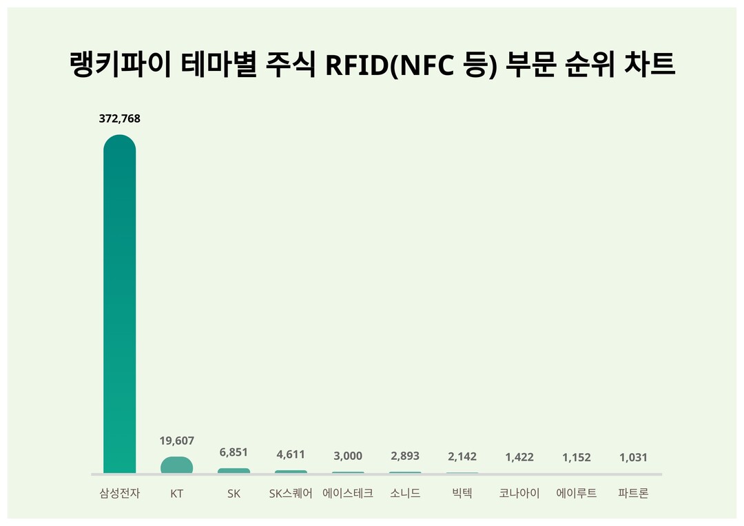 1위 삼성전자 주가·2위 KT 주가·3위 SK 주가, 4월 1주차 테마별 주식 RFID(NFC 등) 부문 트렌드지수 순위 발표