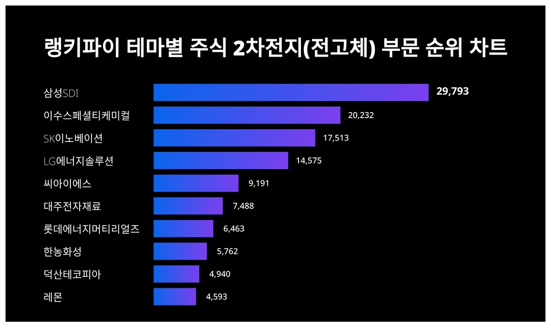 [출처: 랭키파이 테마별 주식 2차전지(전고체) 부문 트렌드 테이블]