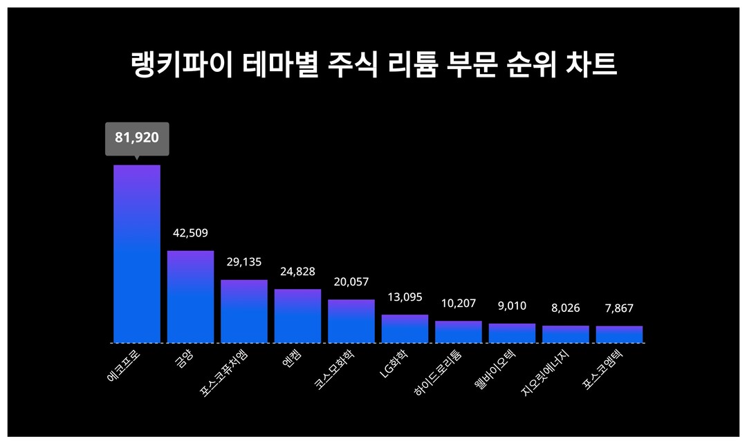 1위 에코프로 주가·2위 금양 주가·3위 포스코퓨처엠 주가, 3월 28일 테마별 주식 리튬 부문 트렌드지수 순위 발표