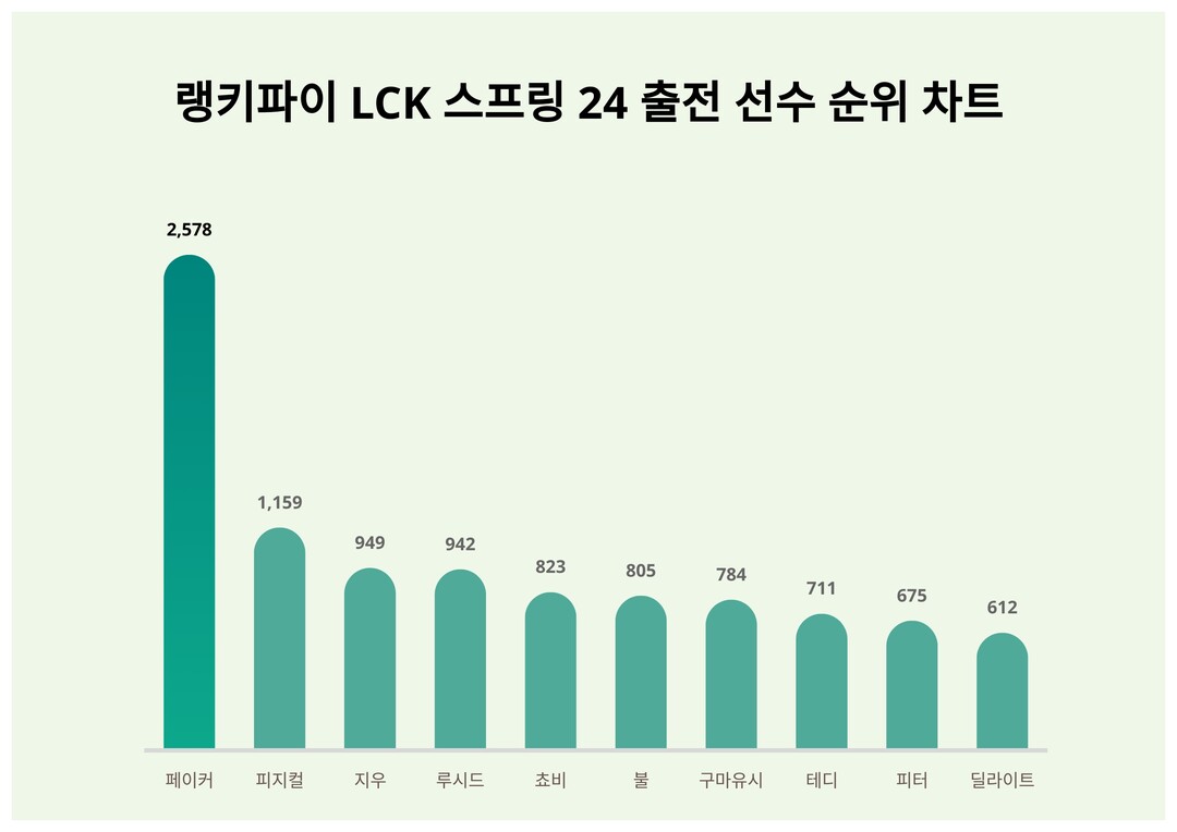 [출처: 랭키파이 LCK 스프링 24 출전 선수 트렌드 지수 분석 결과]