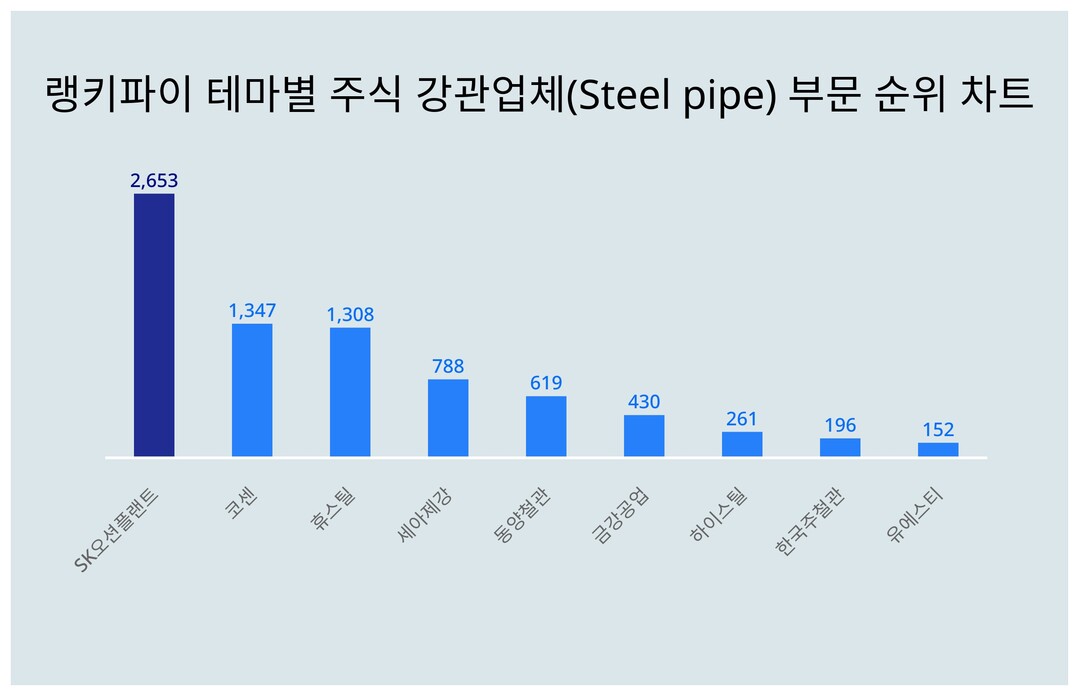 [출처: 랭키파이 테마별 주식 강관업체(Steel pipe) 부문 트렌드 테이블]