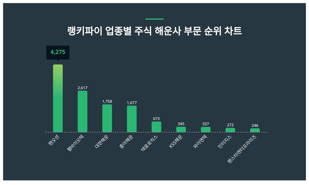 [출처: 랭키파이 업종별 주식 해운사 부문 트렌드 테이블]
