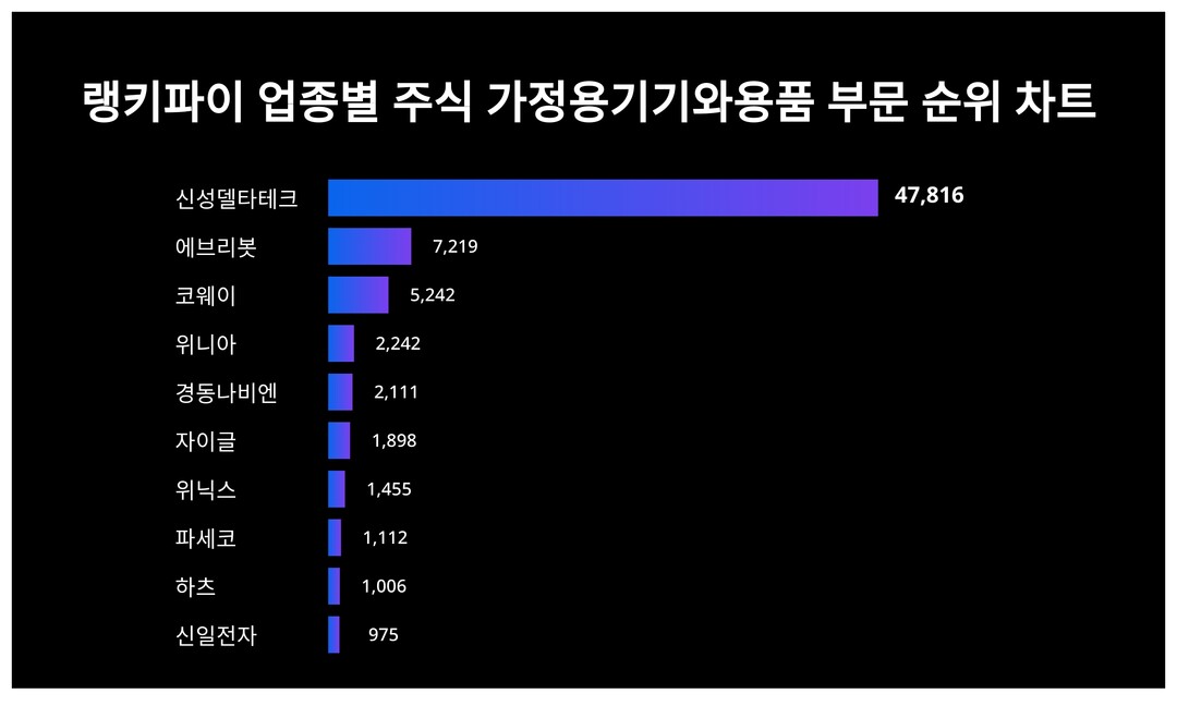[출처: 랭키파이 업종별 주식 가정용기기와용품 부문 트렌드 테이블]