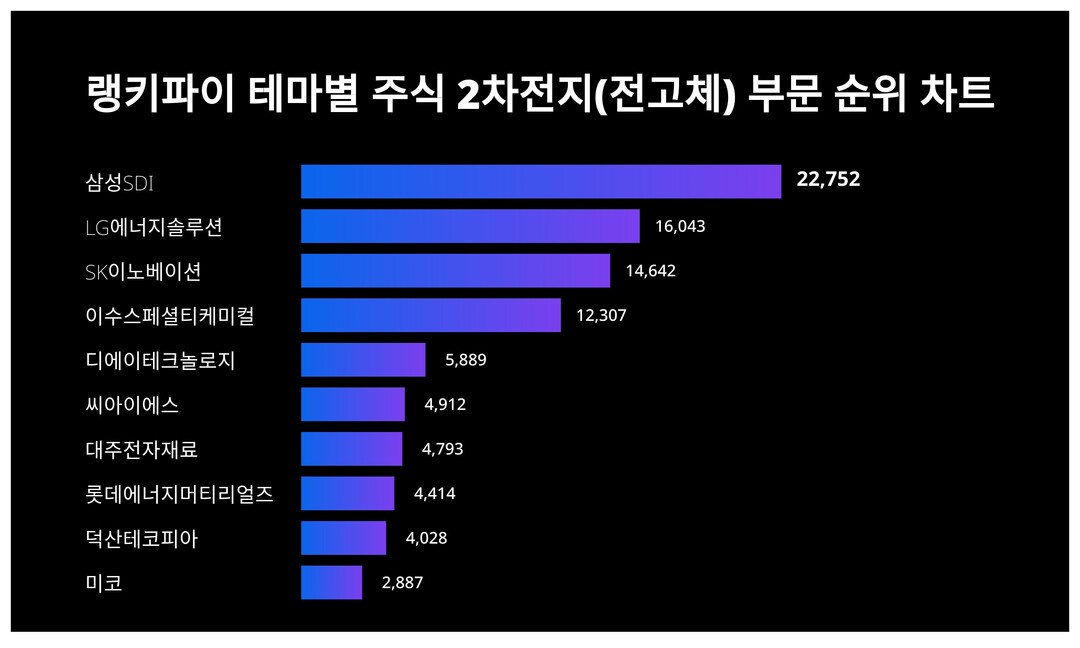 [출처: 랭키파이 테마별 주식 2차전지(전고체) 부문 트렌드 테이블]